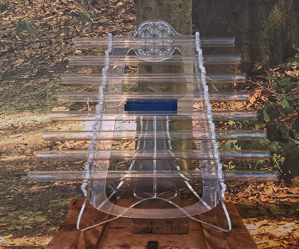 Every Crystal Harp is individually crafted by Natalia and Sever in their workshop in Poland. Each quartz tube is ground and tested to achieve precise 432 Hz tuning - a frequency that stays permanent for the lifetime of the instrument. Pure crystal, complete simplicity, timeless resonance. The same tone on the first day as on the thousandth.